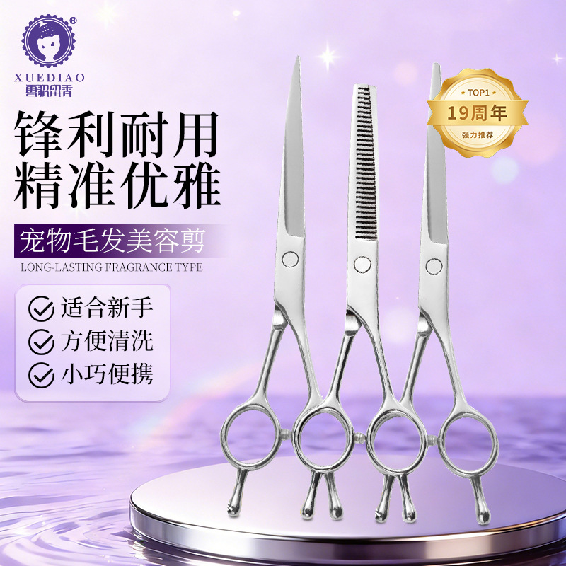 Ferret alat kecantikan hewan peliharaan anjing kucing setelan gunting melengkung alat gunting rambut lurus setelan gunting baja tahan karat