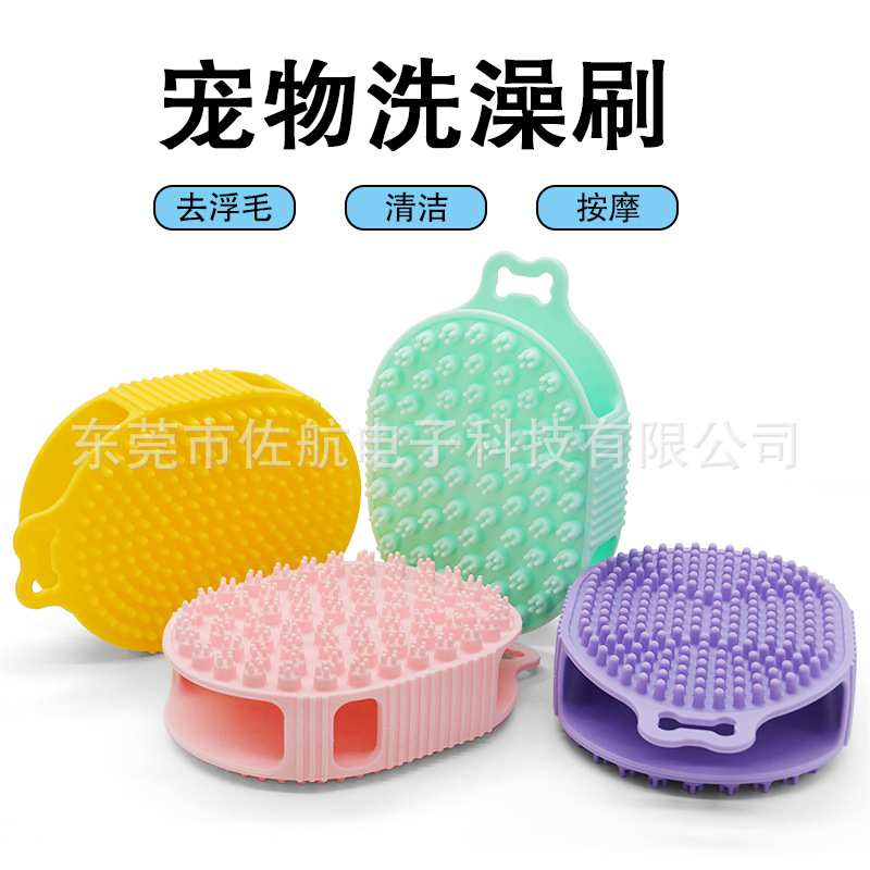 Sikat mandi silikon hewan peliharaan, perlengkapan pembersih khusus kucing dan anjing pijat dua sisi portabel sisir mengambang artefak rambut