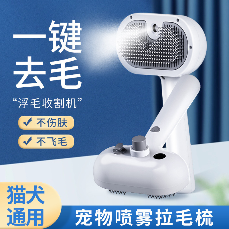 Sisir semprot hewan peliharaan lintas batas, sikat pijat bulu kucing dan anjing elektrik semprotan satu klik anti terbang