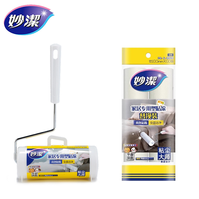 Miaojie rol penghilang debu rumah tangga, kertas rol lengket 16cm penghilang rambut rumah tangga