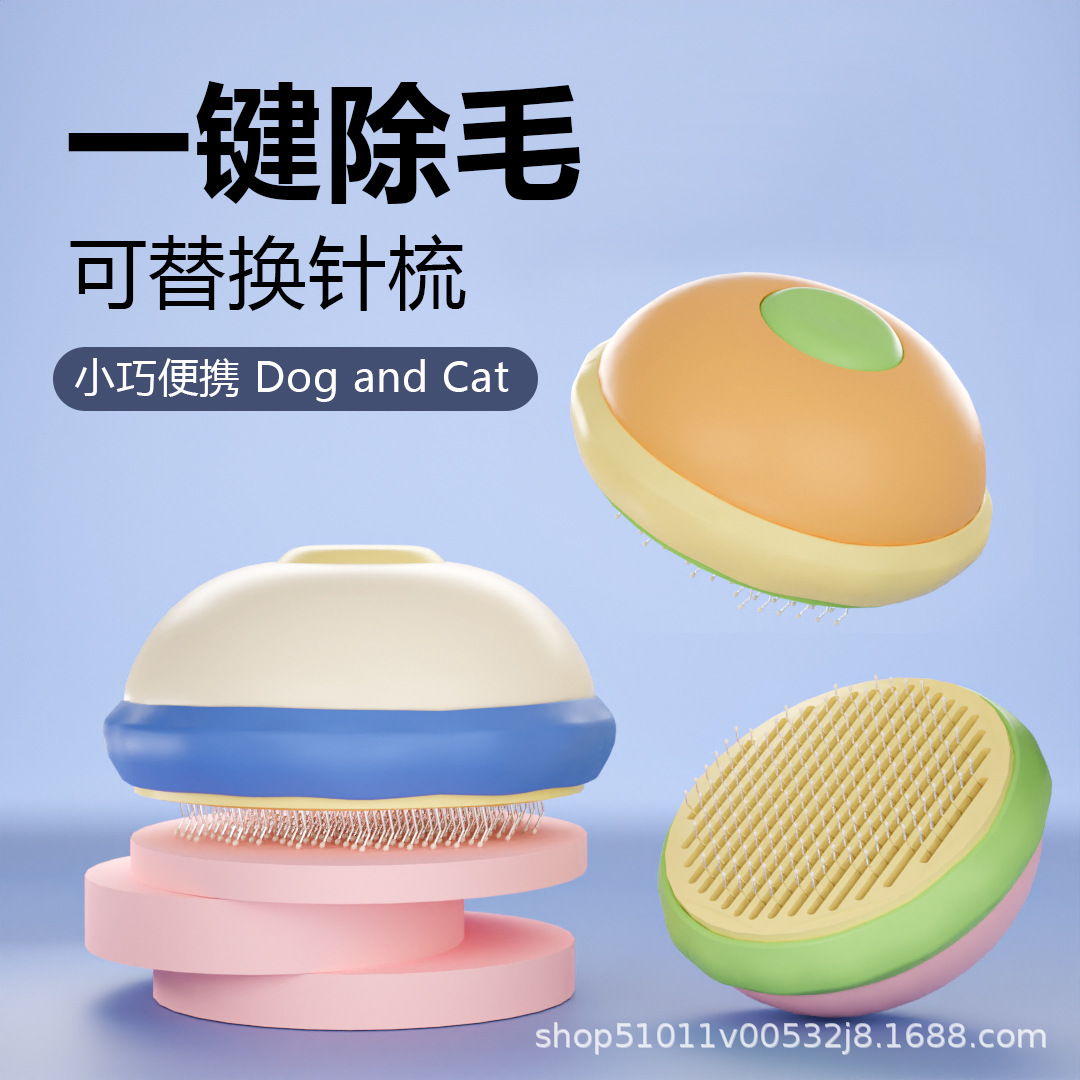 Sisir hewan peliharaan satu klik sisir penghilang rambut sisir pembersih kucing membawa perlengkapan koleksi lengkap sisir jarum lucu esensial cakar kucing penghilang rambut