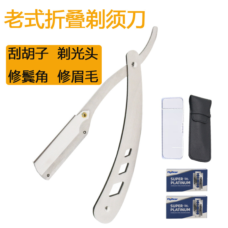 Alat cukur manual perak, setelan alat cukur pria kuno, alat cukur pisau cukur