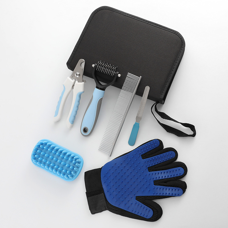 Pabrik grosir alat hewan peliharaan lintas batas tujuh potong sisir gunting kuku setelan hewan peliharaan setelan alat pemangkasan hewan peliharaan