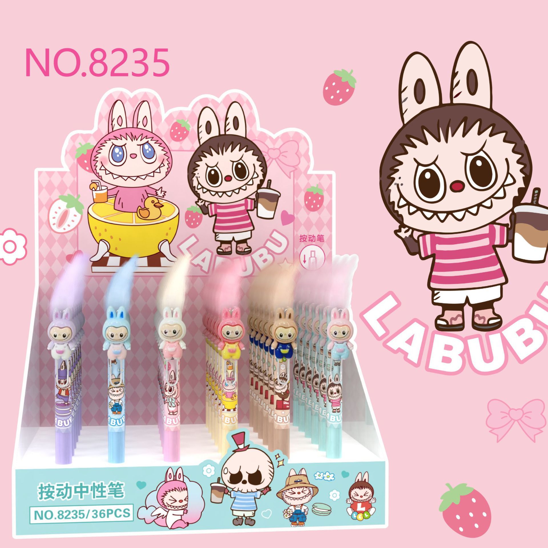 新款炸毛款中性笔可爱创意粘毛签字笔搞怪丑娃按动款水性笔