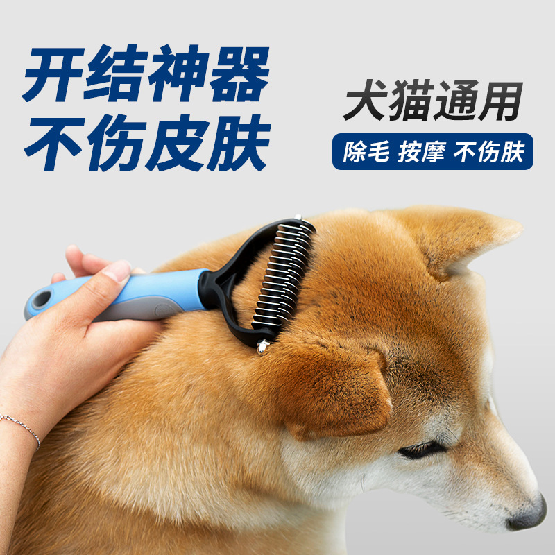 Sisir penghilang bulu hewan peliharaan, perlengkapan hewan piaraan sisir anjing kucing sisir stainless steel simpul dua sisi sisir simpul