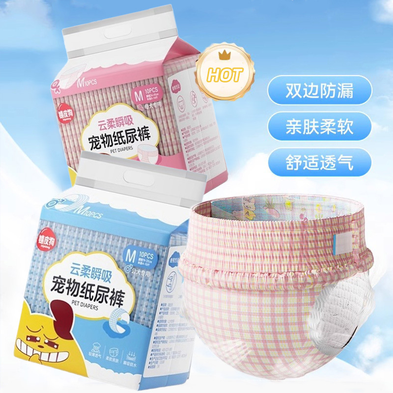Celana fisiologis anjing perempuan hewan peliharaan, popok anjing ukuran kecil dan sedang teddy golden retriever celana menstruasi popok sekali pakai