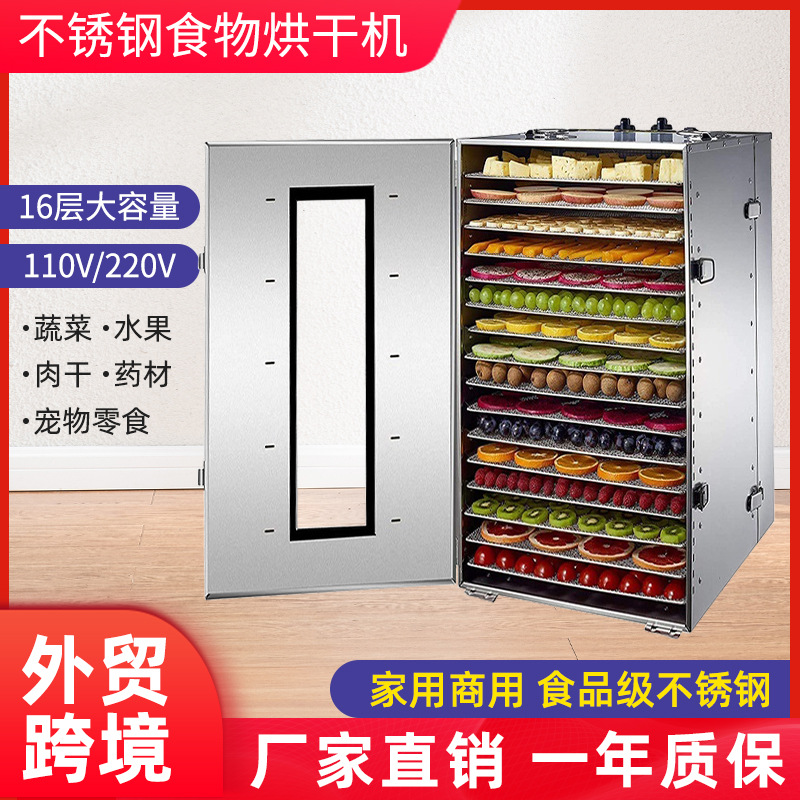 Mesin Pengering buah kering makanan komersial 16 tingkat pengering buah dan sayuran baja tahan karat pengering dehidrasi makanan ringan hewan peliharaan kustomisasi perdagangan luar negeri