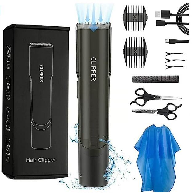 Alat cukur rambut bayi dengan penghisap rambut otomatis, pemangkas rambut elektrik anak-anak dengan pisau keramik untuk mencukur kepala botak.