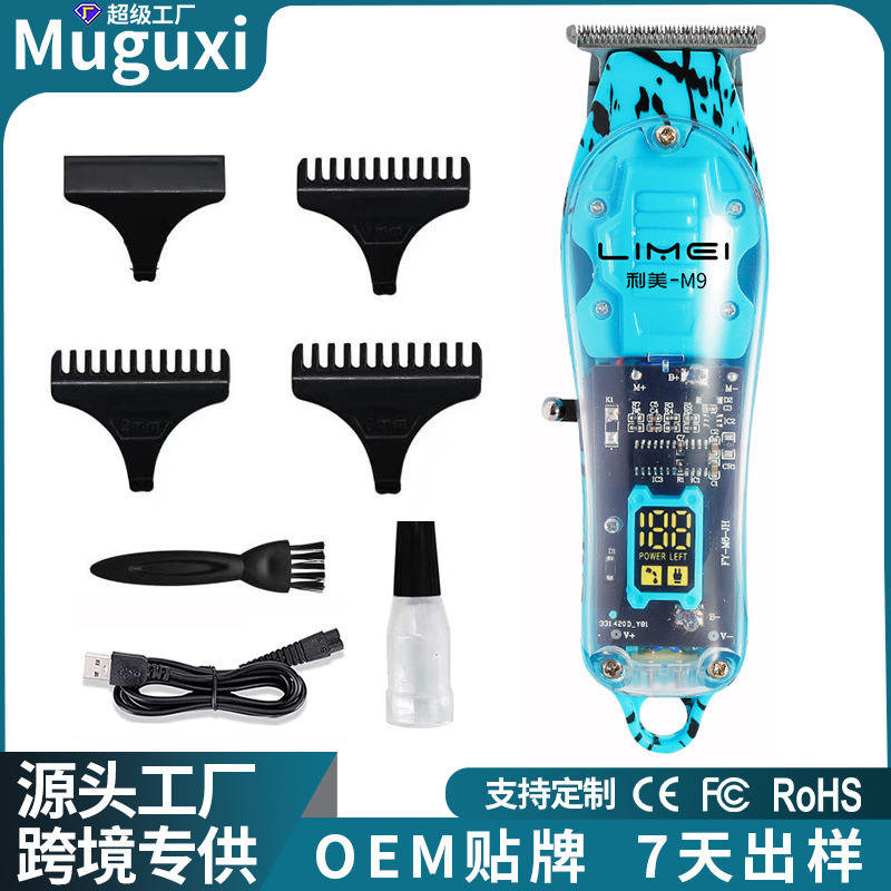 Muguxi mesin pencukur rambut transparan warna langsung pabrik alat pemotong rambut elektrik pemotong rambut pria lintas batas Amazon