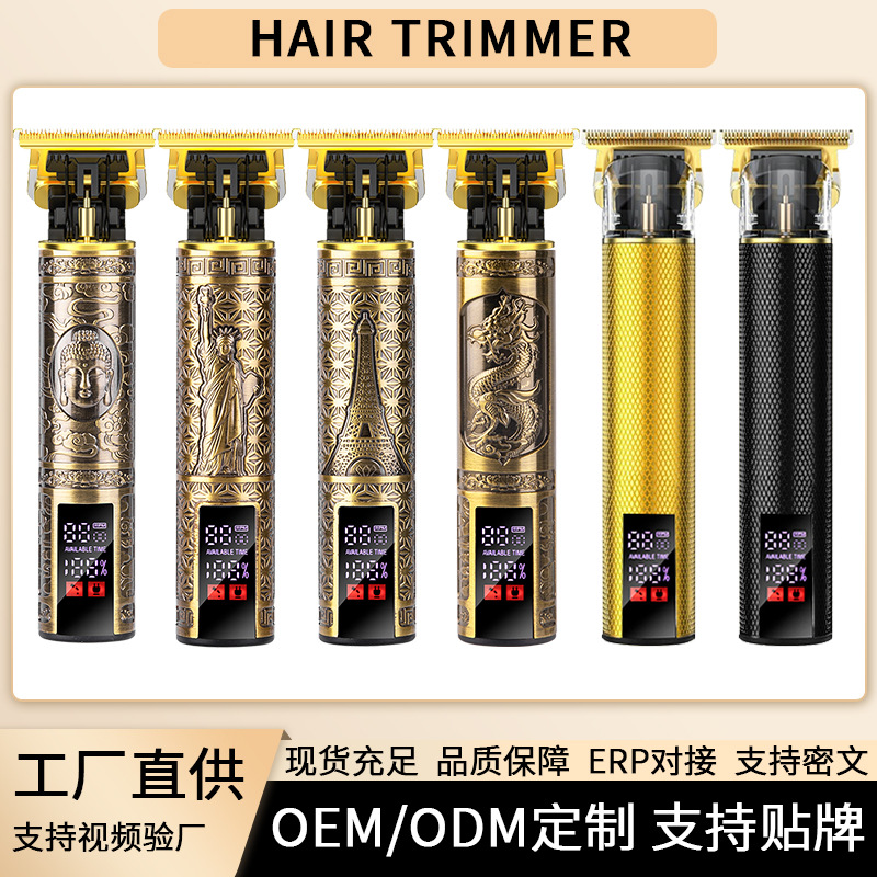Pencukur rambut listrik lintas batas, alat pemotong rambut elektrik ukiran naga dan phoenix tampilan digital elektrik grosir