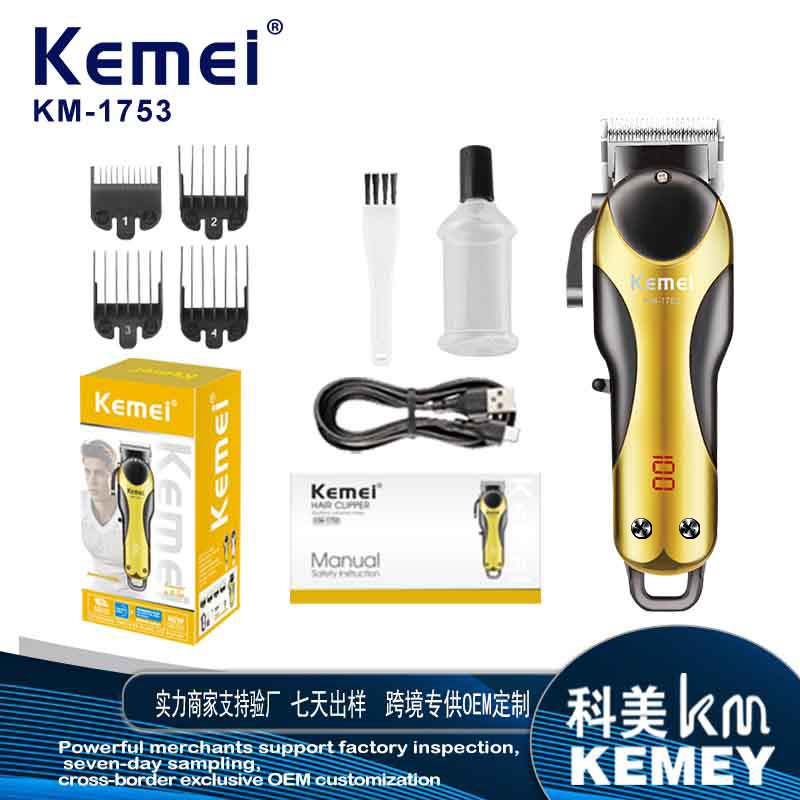 Kemei, Pemangkas Rambut Lintas Batas, Pemotong Rambut Listrik, KM-1753 Digital, Dorong Listrik, Pembalut Listrik, Tajam, Tanpa Kartu