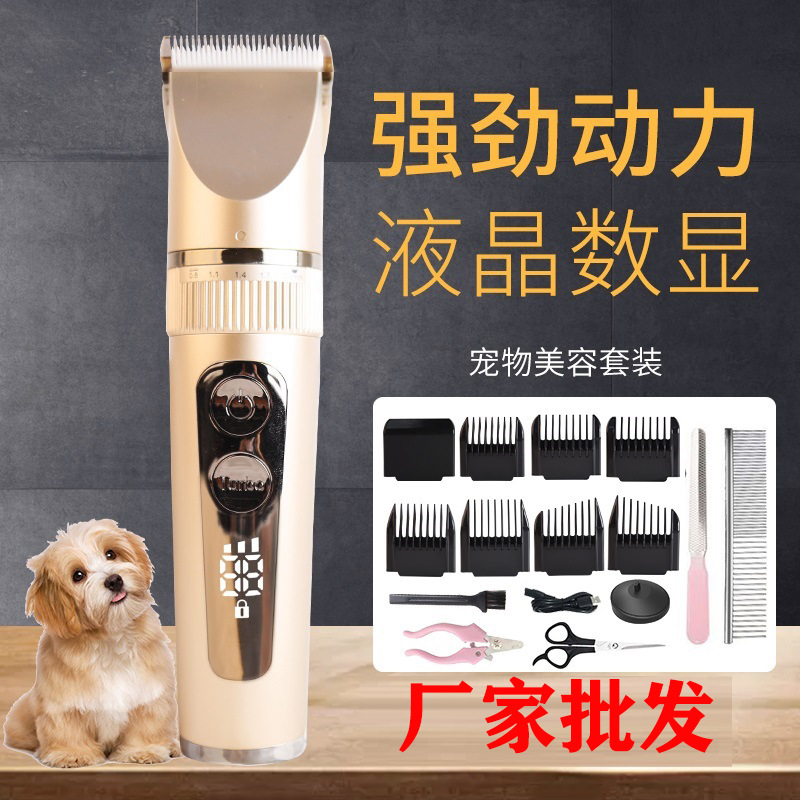 Alat cukur anjing elektrik hewan peliharaan Amazon alat cukur anjing kucing teddy anjing pencukur rambut hewan peliharaan penjepit rambut layar LCD