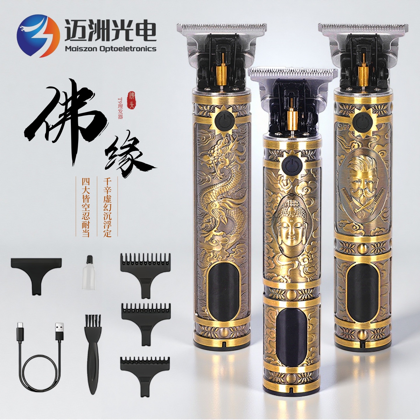 Cross-border kepala gunting pangkas listrik T9, kepala minyak gunting tukang cukur bambu dapat dicuci, pemotong rambut kecil