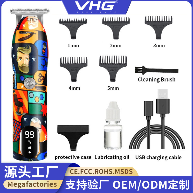 Penjualan langsung dari pabrik Amazon gunting rambut pria lintas batas setelan kepala pencukur dengan lima kontrol kecepatan pemotong elektrik pencukur rambut ukir