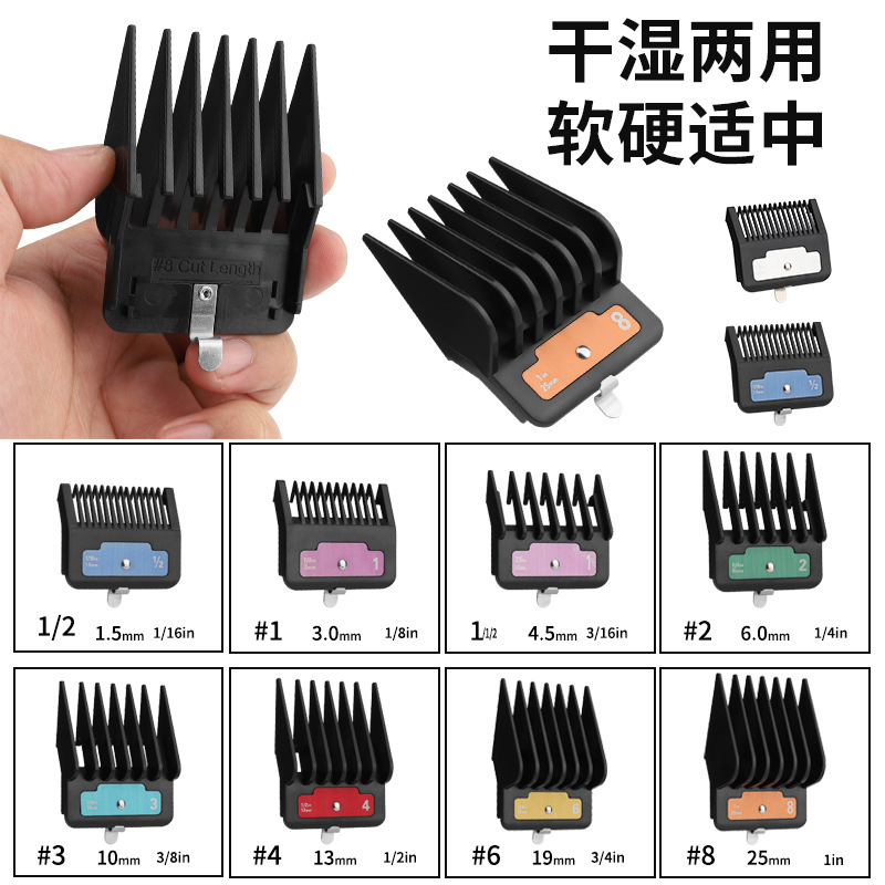 Amazon setelan kaliper pencukur rambut pria, aksesori penjepit rambut elektrik 8 buah, sisir batas, pemotong rambut daya tinggi