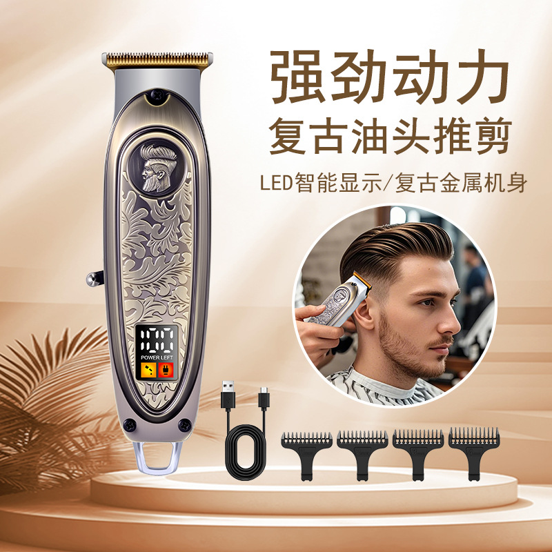 HATTEKER Gunting Geser Kepala Minyak Retro Pemotong Rambut Listrik Pemotong Rambut Pemotong Rambut Pemotong Rambut Pemotong Rambut Pengisi Daya USB
