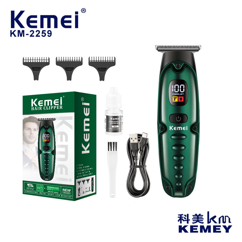 KEMEI gunting rambut baterai lithium, mesin pencukur tukang cukur elektrik rumah tangga tampilan digital LCD lintas batas kapasitas besar