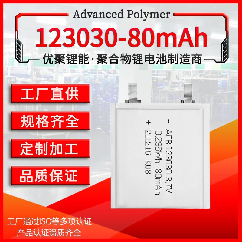 Mengkhususkan diri dalam produksi baterai litium polimer 123030 baterai litium 3.7V 80mAh baterai isi ulang kertas ultra-tipis