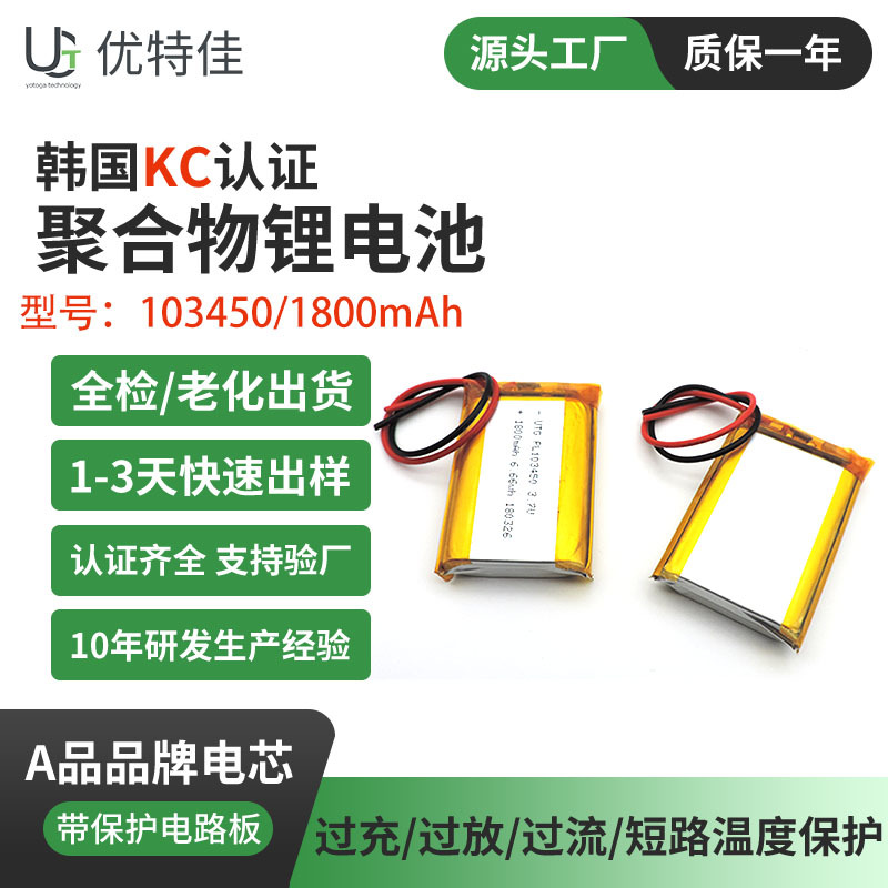 Baterai lithium polimer 103450 3.7V 2000mAh, instrumen kecantikan penghangat tangan baterai bersertifikat CE MSDS KC