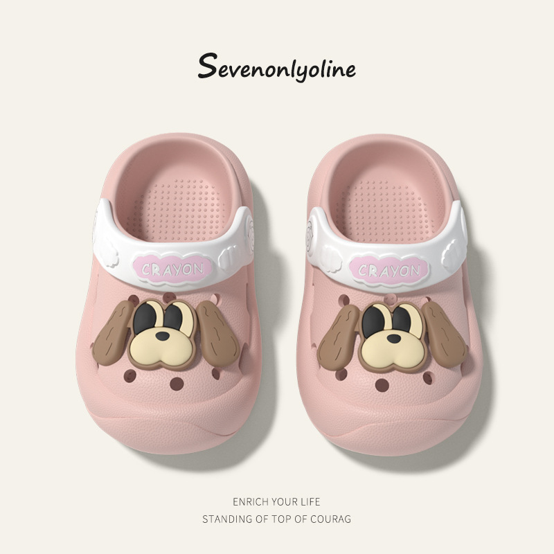 夏季儿童新款洞洞鞋女宝外穿EVA可爱卡通小狗鞋花男宝居家凉拖鞋