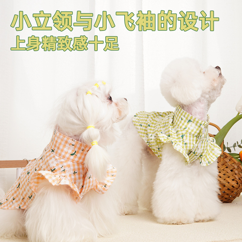 Baju anak anjing musim panas kaus floral tipis kemeja renda kasual kucing Jepang dan Korea aksesoris pakaian hewan peliharaan grosir