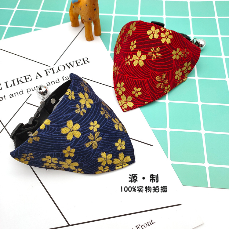 Handuk segitiga hewan peliharaan Jepang langsung dari pabrik aksesori syal kucing handuk air liur anjing kerah bel kerah kucing