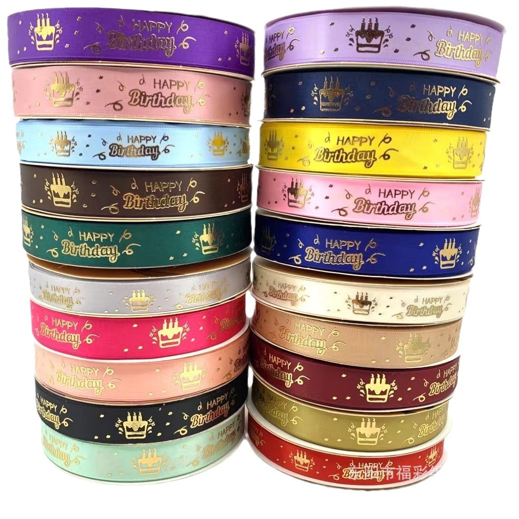 Pita Selamat Ulang Tahun penyepuhan padat panas 2cm, sabuk hadiah pita pasokan langsung pabrik balutan kue ulang tahun