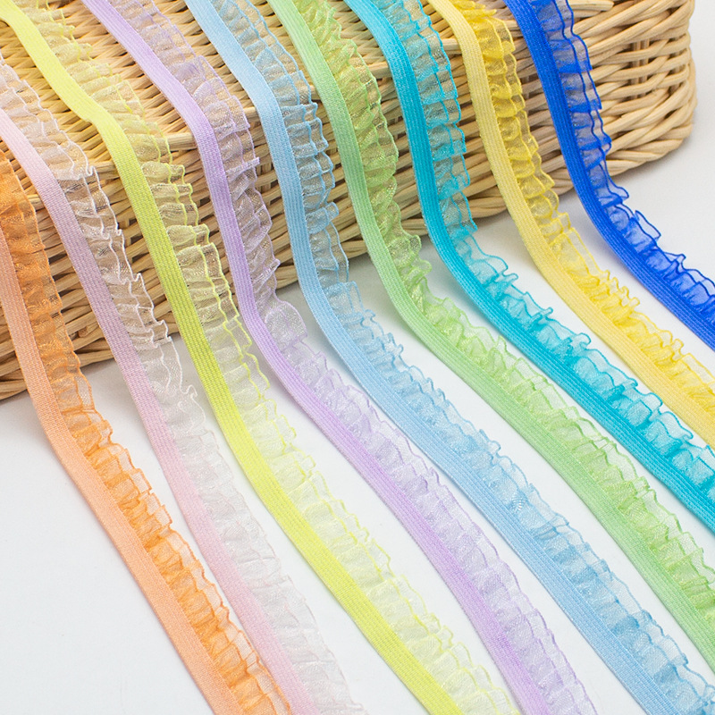Dalam stok 13 warna benang salju ganda Ruffles 15mm Aar Peregangan renda BJD pakaian bayi pakaian hewan peliharaan aksesoris DIY