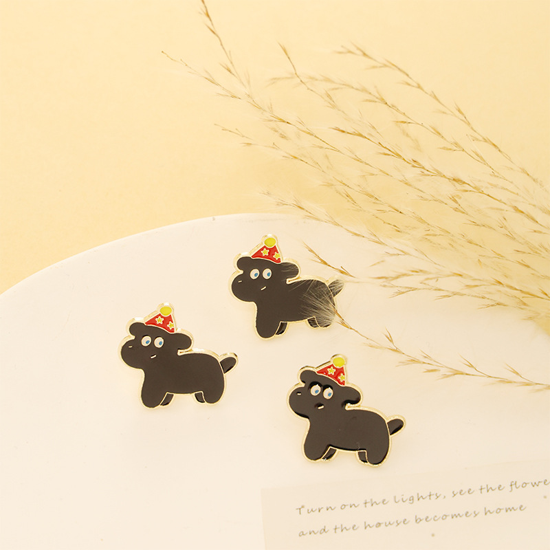 Bros anjing gaya Korea, tas pin Aksesori pakaian anak anjing hitam dan putih seri zodiak Prancis
