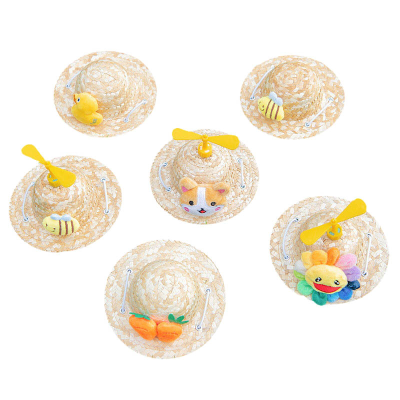 Amazon Hewan Peliharaan Topi Jerami Topi Anjing Kartun Topi Capung Bambu Hiasan Kepala Kucing Hiasan Kepala Anjing Topi Jerami