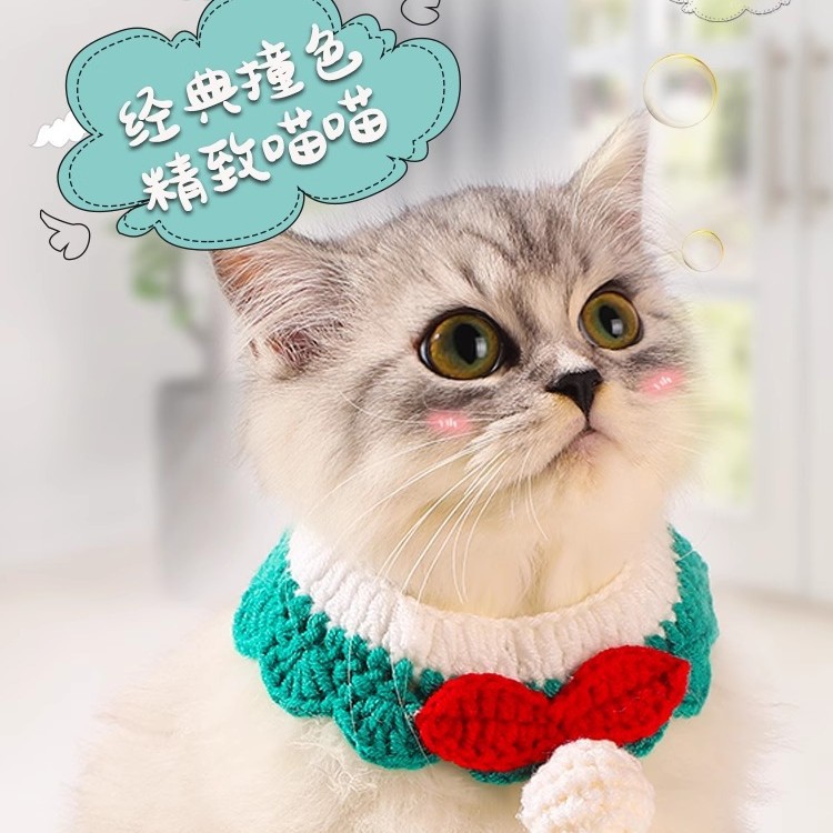 Rajutan hewan peliharaan Tahun Baru liburan kucing anjing meriah bib syal dekorasi kerah tenun buatan tangan