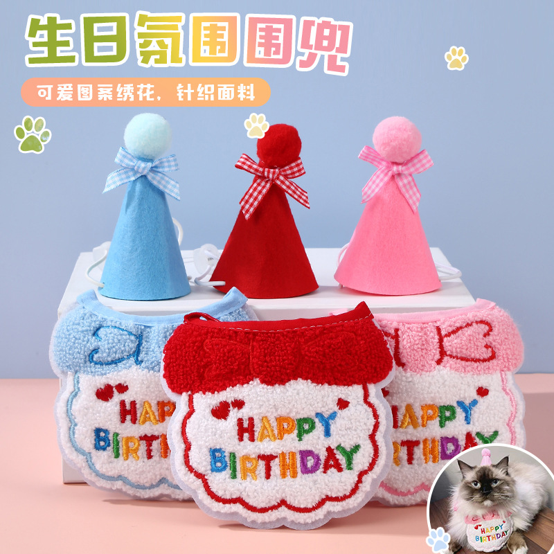 Sulaman ulang tahun hewan peliharaan gaya INS kerah bib handuk air liur topi pita aksesoris kucing dan anjing anjing ukuran kecil