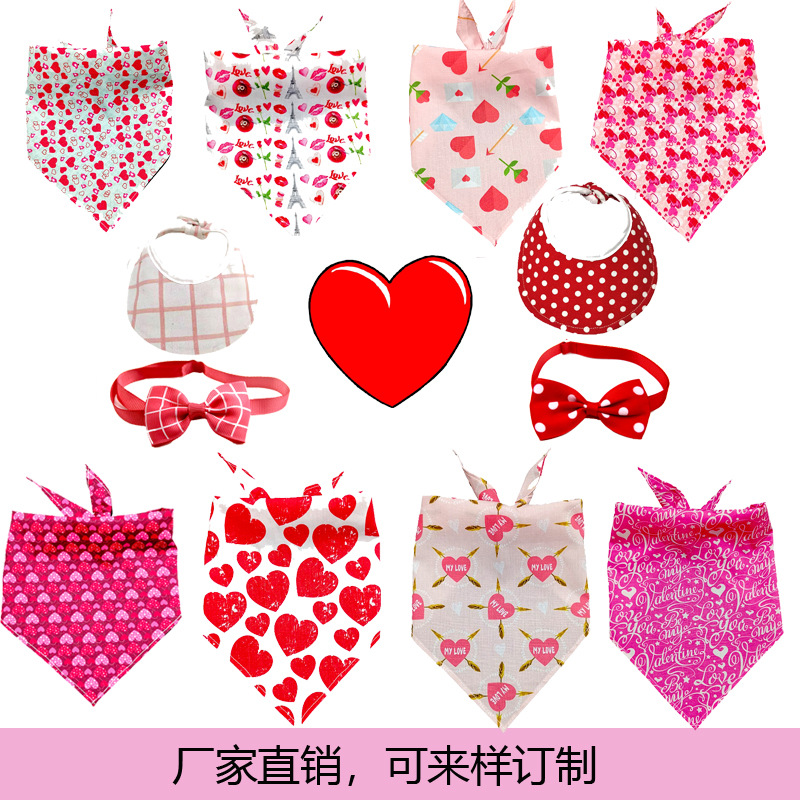 Topi hewan peliharaan multiguna Hari Valentine, banyak warna nyaman anjing kucing peliharaan segitiga aksesoris handuk air liur hewan peliharaan