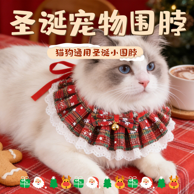 Cross-border syal Natal hewan peliharaan lonceng kucing anjing bib organza renda kucing syal anjing handuk air liur hewan peliharaan