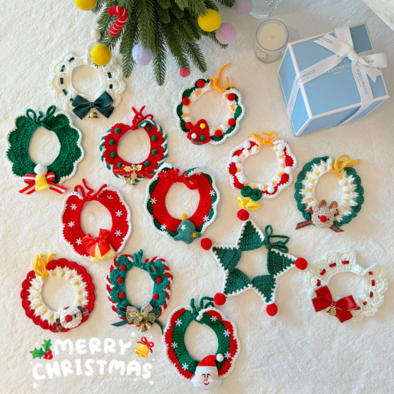 Natal Kucing Syal Syal Anjing Syal Air Mulut Anjing Anjing Model Kecil Kerah Wol Hewan Peliharaan Aksesori Tenun Buatan Tangan