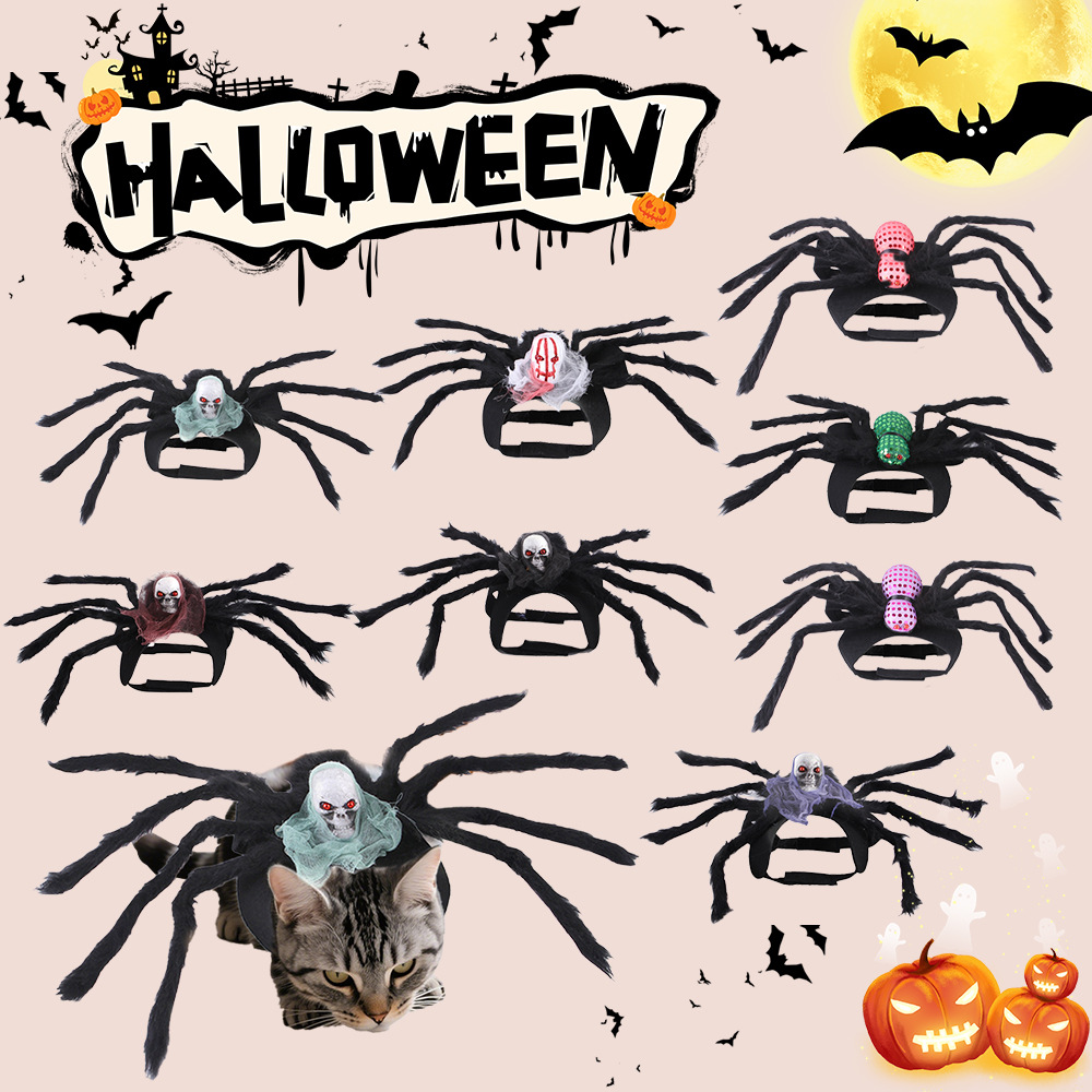 Hewan peliharaan laba-laba dada dan belakang Halloween kreatif kucing anjing kecil tengkorak transformasi pakaian baru