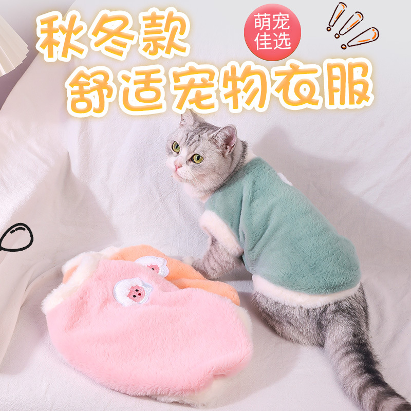 Pakaian hewan peliharaan baru musim gugur dan musim dingin kain komposit pita suede yang indah dengan cincin traksi mantel bantalan katun
