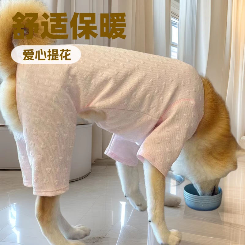 Pakaian Empat Kaki Anjing Besar Musim Gugur dan Musim Dingin Pakaian Rumah Tangga Alaska Bulu Emas Jacquard Cinta Hati Beludru Karang Tebal Tahan Dingin Keluar