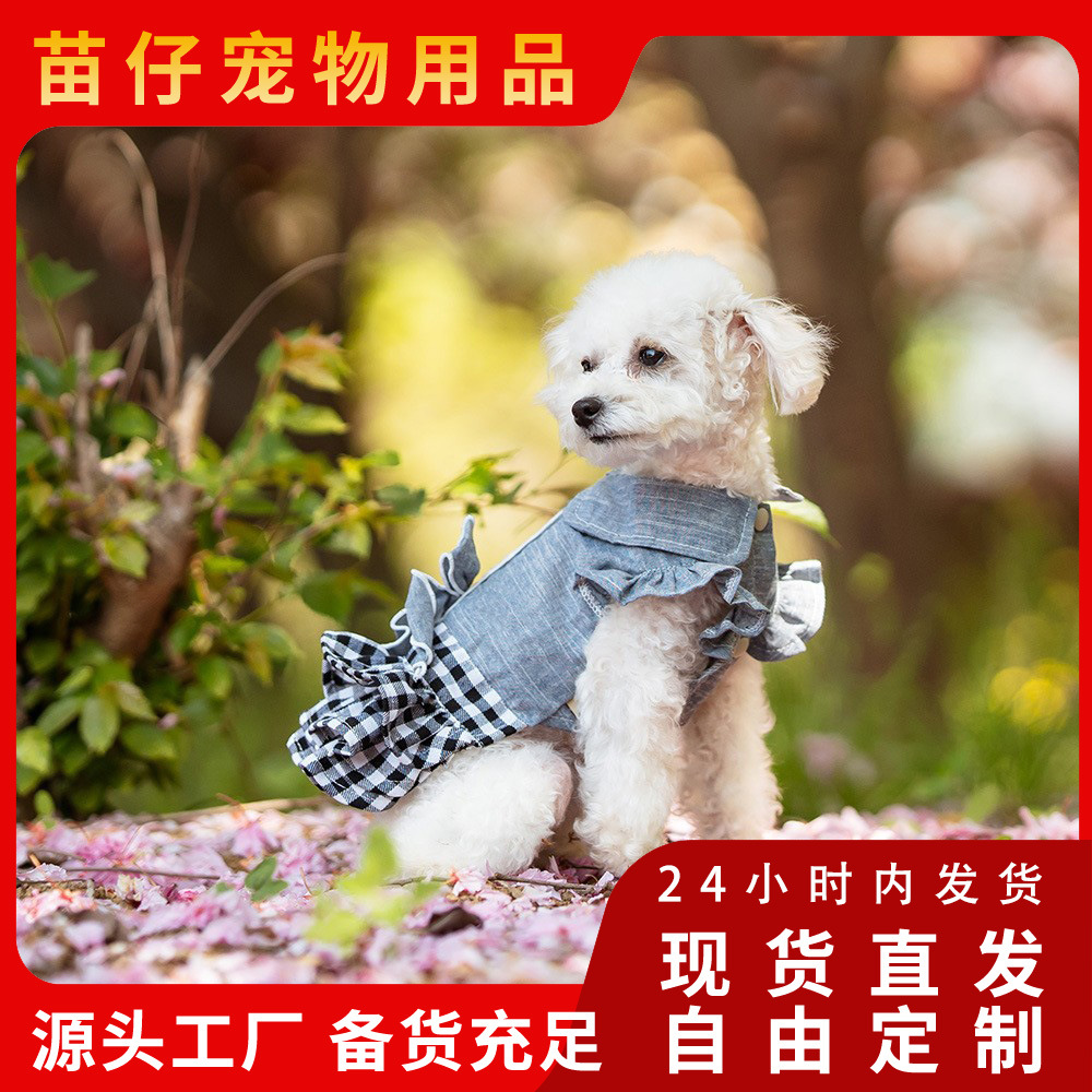 Pakaian hewan peliharaan musim semi dan rok musim panas rok anjing tipis rok denim busur putri anjing kecil pakaian anjing teddy