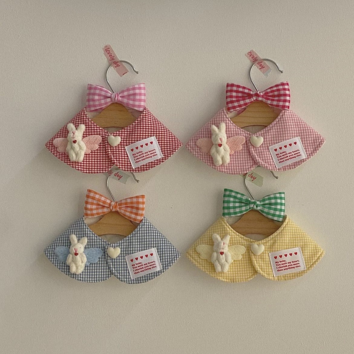 韩国ins新款可爱格纹兔子斗篷披风pet猫狗宠物围脖口水巾装饰格子