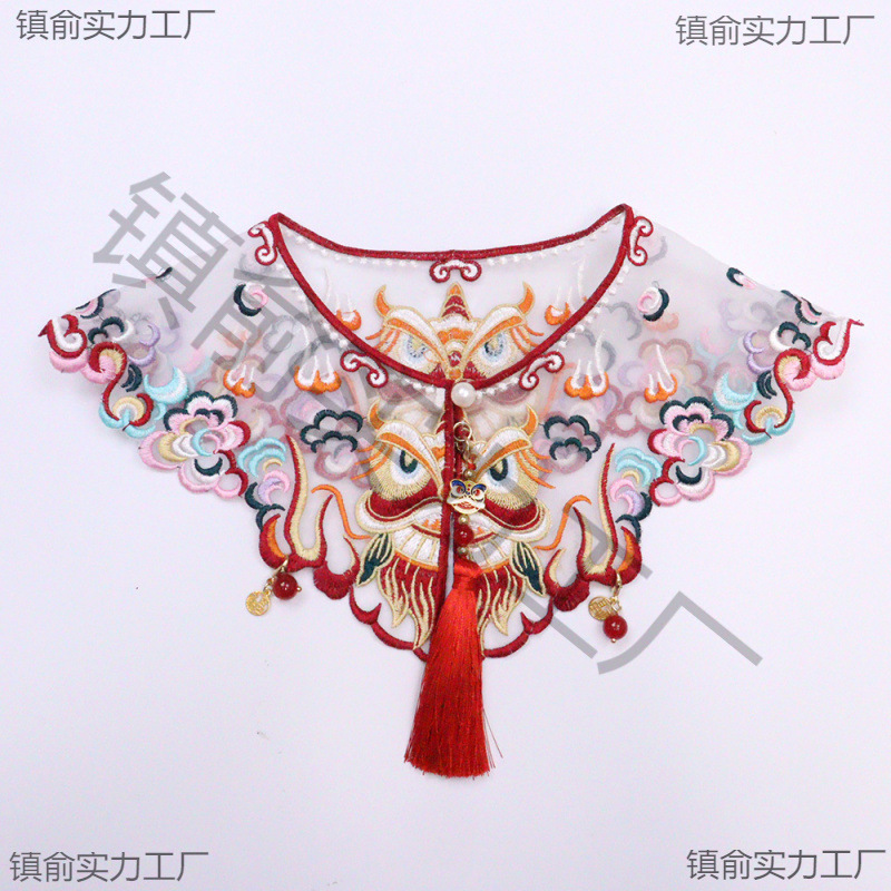 Aksesori Hanfu Kucing Syal Hewan Peliharaan Bordir Singa Merah Bahu Awan Liontin Celemek Anjing Gaya Kuno Liontin Leher