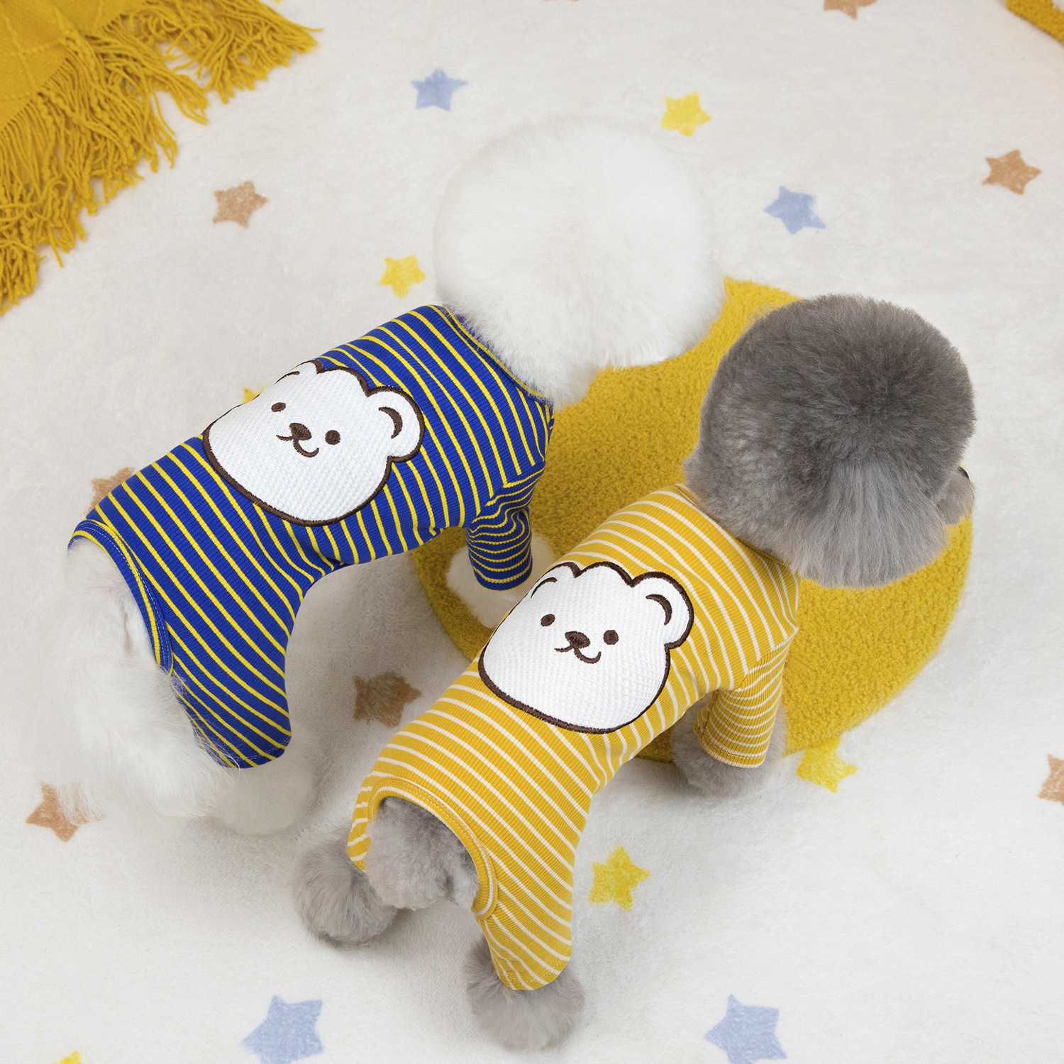 Pakaian Kucing Perlengkapan Hewan Peliharaan Pakaian Hewan Peliharaan Pakaian Anjing Musim Semi dan Musim Panas Produk Baru Pakaian Hewan Peliharaan 25 Garis-Garis Kain Tempel Empat Kaki Beruang