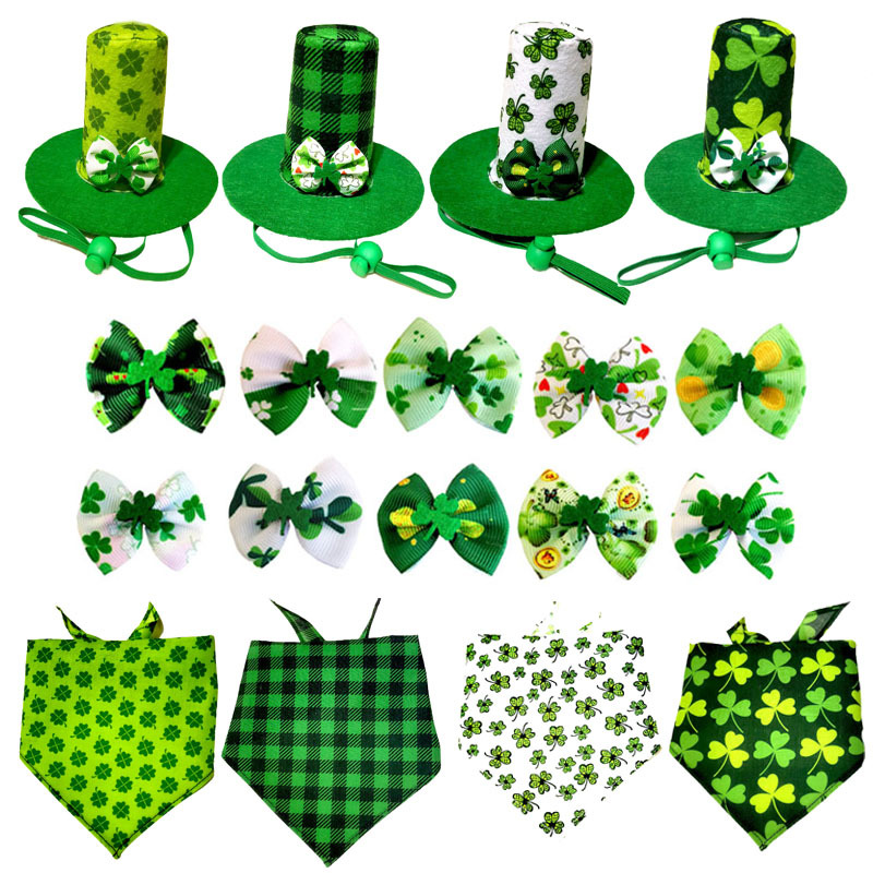 Baru handuk segitiga empat daun semanggi topi hewan peliharaan hiasan kepala hewan peliharaan kucing Patrick hari handuk air liur hewan peliharaan anjing