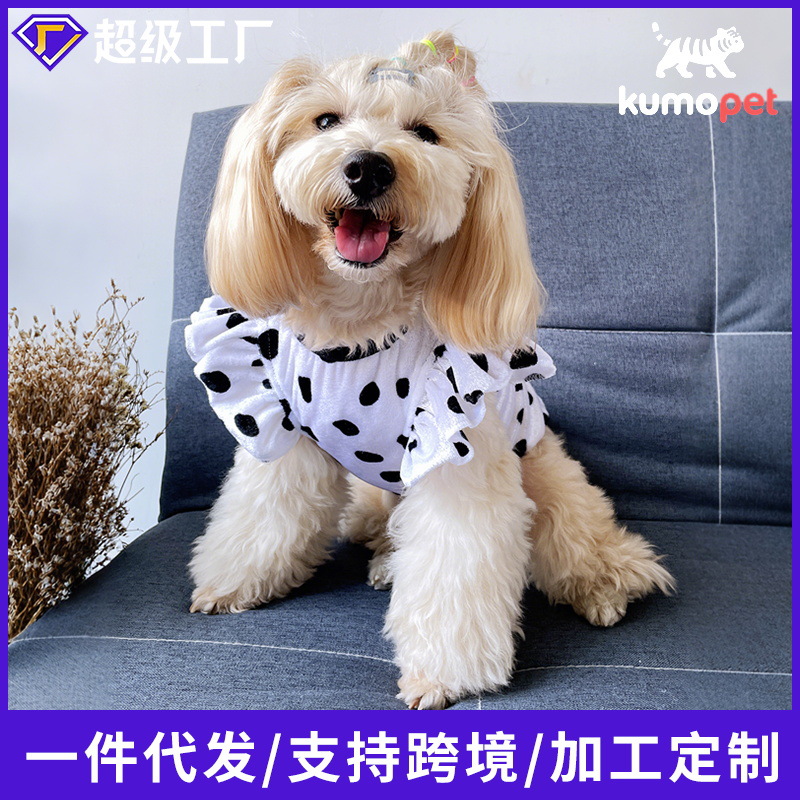 Pakaian hewan peliharaan gaun busur katun dicetak Teddy chenarui fadou Bomei kucing pakaian anjing lucu