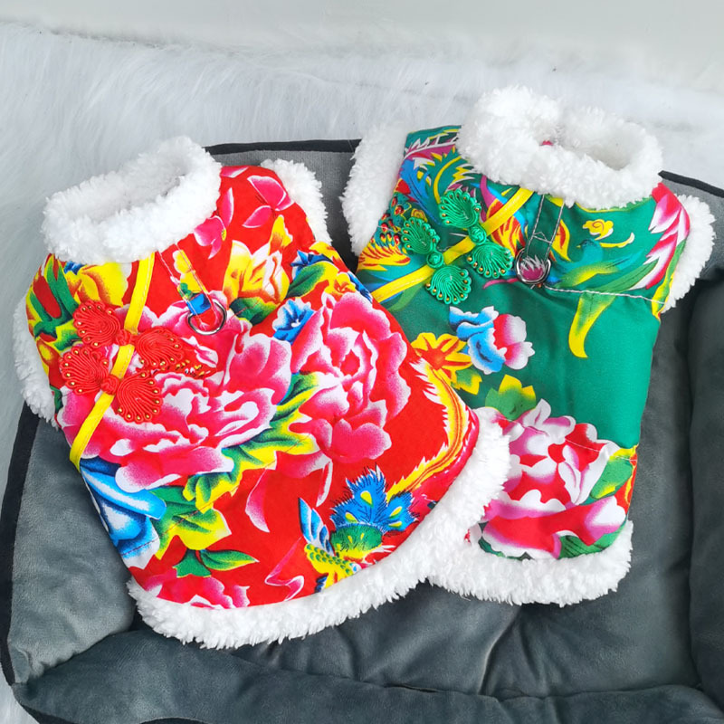 2023 baru kucing Beruntung jahitan empat kaki cheongsam pakaian hewan peliharaan menebal Teddy Corgi anjing kecil dan sedang