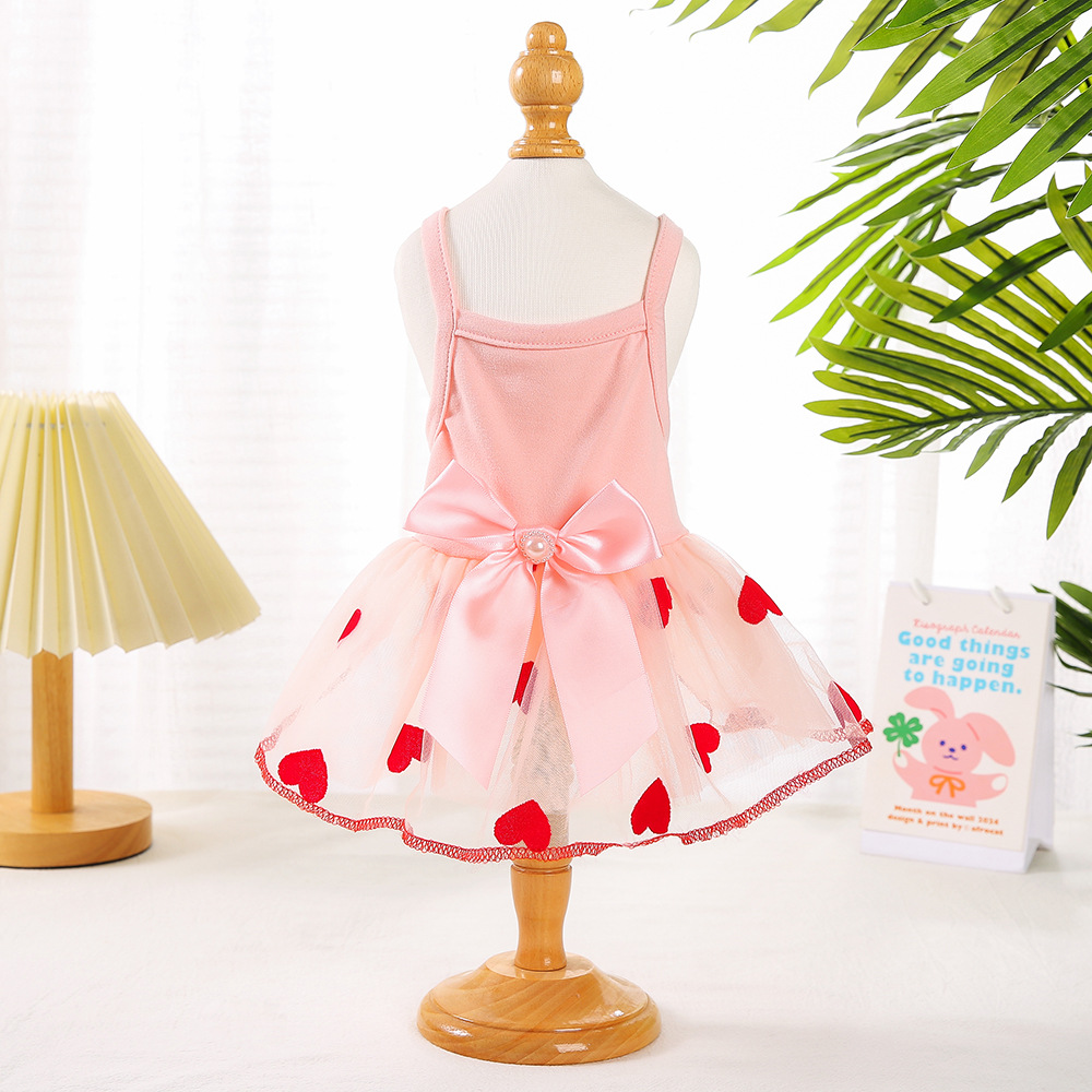 Gaun pita tiga dimensi untuk anak anjing, pakaian anjing piaraan tipis musim semi dan panas, rok gaya putri kucing, baju anak anjing tiga dimensi