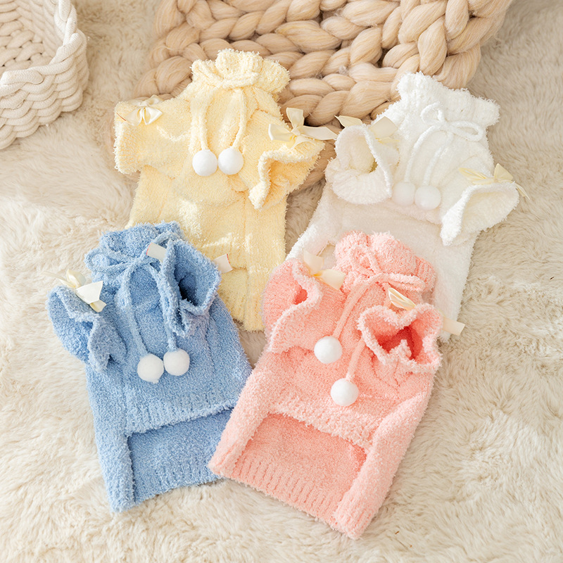 Sweater rajut wanita, pakaian musim dingin hewan peliharaan hangat kucing anjing kecil bola bulu gaya putri musim gugur dan musim dingin