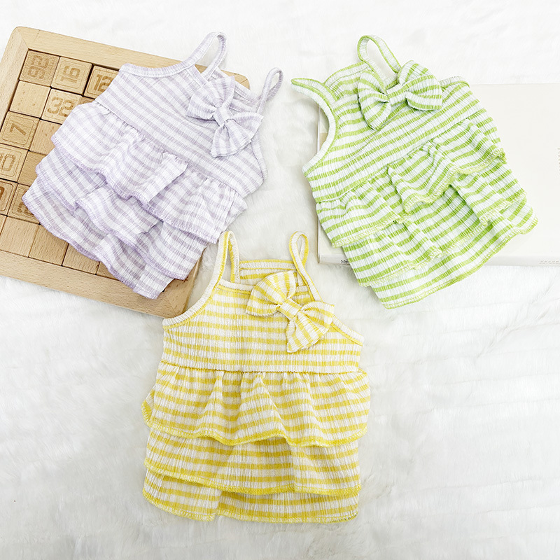 Pakaian hewan kesayangan, rok anjing kecil Teddy, rok suspender pita bergaris, pakaian anjing musim semi dan panas