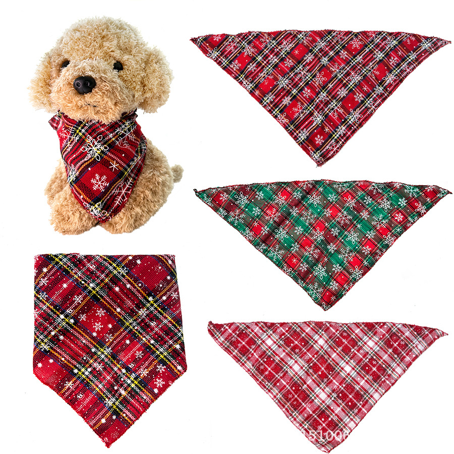 Handuk air liur hewan peliharaan anjing syal segitiga Natal syal kucing kotak-kotak Santa Claus lucu dekorasi hewan peliharaan