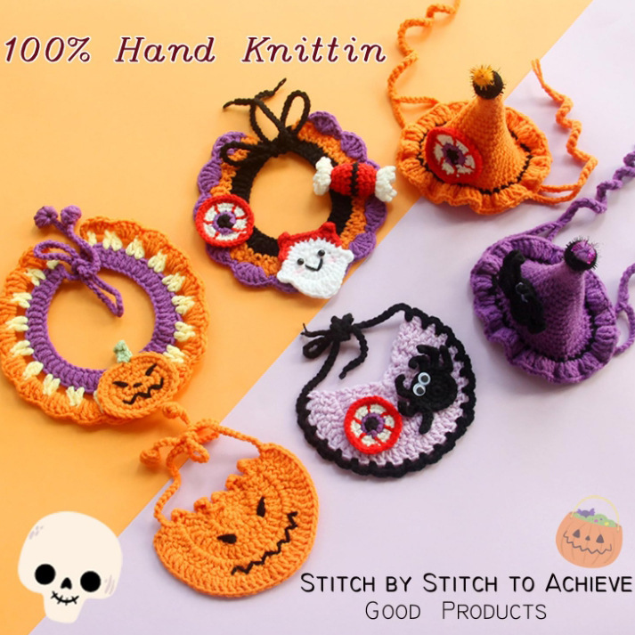 Aksesori Hantu Labu Hiasi Topi Penyihir Wanita Bib Tenun Buatan Tangan Kucing Halloween Model Meledak Lintas Batas